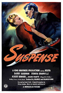 Suspense was intended as a showcase for Belita, the English ice skater who was Monogram Pictures’ answer to Sonja Henie. The bargain-basement studio spared no expense, the King Brothers ponying up the princely sum – for them – of one million dollars. Barry Sullivan plays Joe Morgan (no, not that one, thank God), an itinerant operator with a shady past. He rolls into Los Angeles and lands a job slinging peanuts at an ice palace (the Pan-Pacific!) owned by Albert Dekker and headlined by Dekker’s wife (guess who). Sullivan smarms his way into the head office in short order, and falls for the featured attraction’s attractive features.